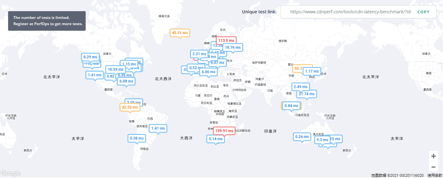 CDNPerf https://www.cdnperf.com/tools/cdn-latency-benchmark 是一个免费的CDN分析与评测网站,他可以根据数十亿次测试,免费找到最快,最可靠的CDN。